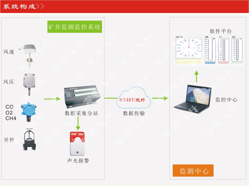 (2)可以連續(xù)監(jiān)測礦井中的各種環(huán)境參數(shù)和生產(chǎn)控制狀態(tài),如甲烷、一氧化碳、風(fēng)速、風(fēng)壓、風(fēng)門等生產(chǎn)控制參數(shù)。
