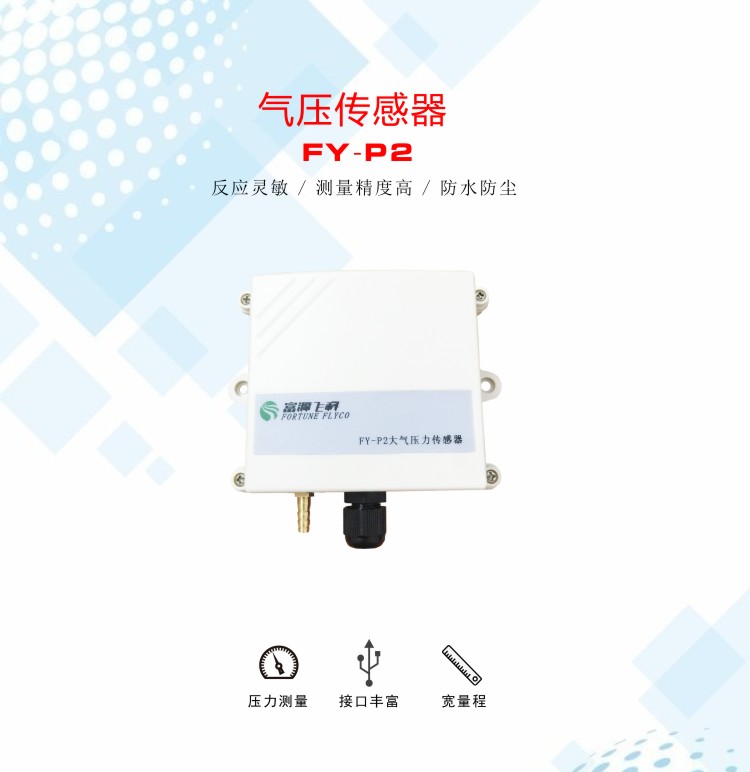 FY-P2氣壓傳感器采用進口高精度壓力芯片,測量精度高、穩定性好。精密信號處理電路可根據用戶的不同需求將大氣壓力轉換為電壓或電流等其它輸出信號。具有體積小巧,性能可靠,精度高,負載能力強,傳輸距離長,抗干擾能力強等特點??蓮V泛用于氣象、海洋、環境、機場、港口、實驗室、工農業及交通等領域。
