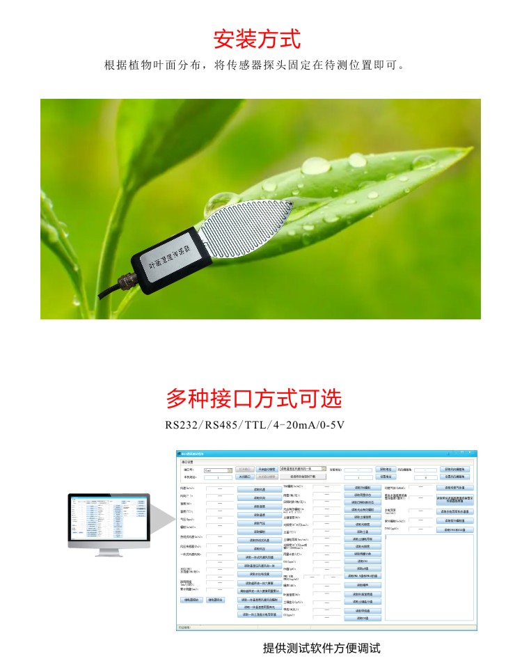 例如: FY-YM-12V-A1:葉面濕度傳感器:12V供電,4-20mA電流信號輸出 |