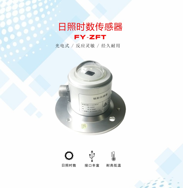 例如: FY-ZFT-12V-M:日照時數傳感器:12V供電,開關信號輸出  |