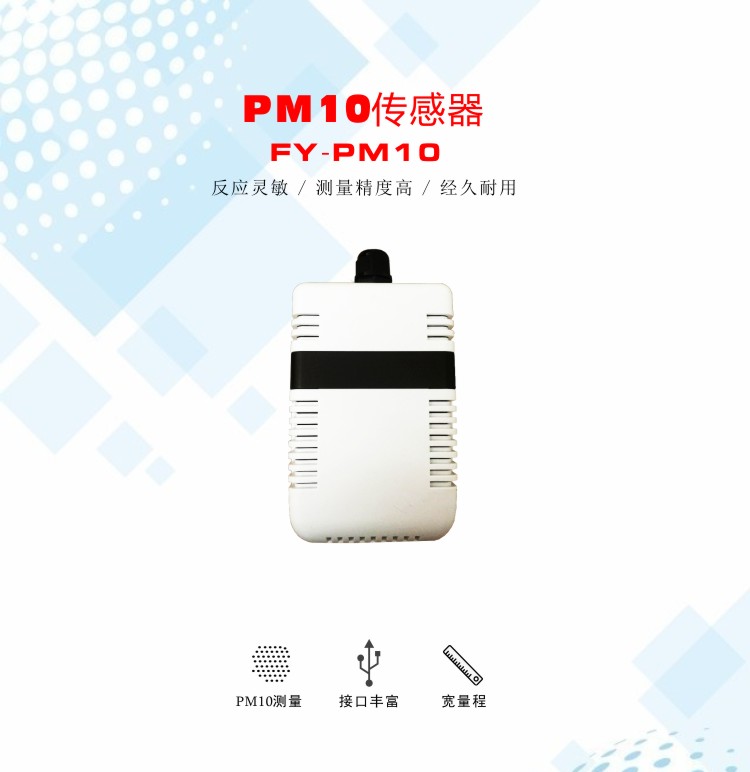 FY-PM10傳感器可監測小于10um的顆粒,相對準確的反映當地的PM10的值。測量范圍可以達到0~2000ug/m3,可準確可靠的在線監測空氣中塵埃粒子動態,具有操作簡單,反應靈敏度高等特點。