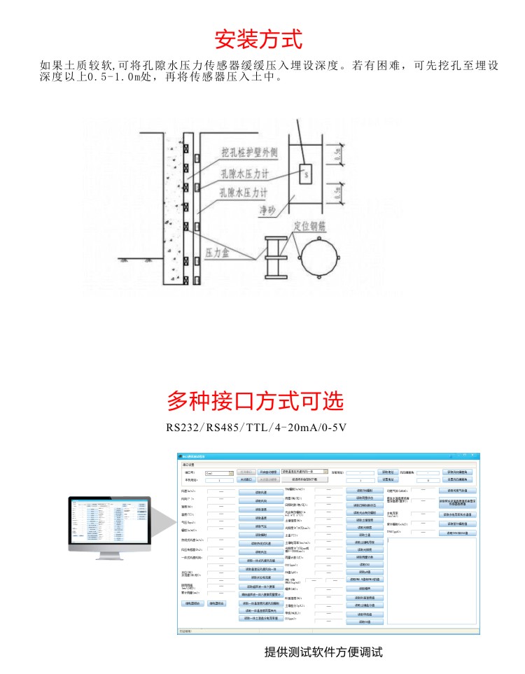 例如:FY-ZKP-12V-A1:孔隙水壓傳感器12V供電,4-20mA輸出  |