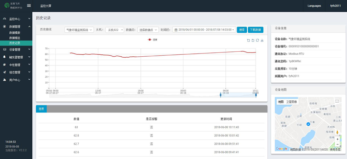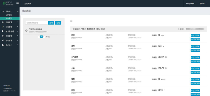 富源飛科物聯網通過與客戶需求的溝通,不斷總結完善,對各功能模塊反復修改調試,環境監測云平臺2.0版正式發布。