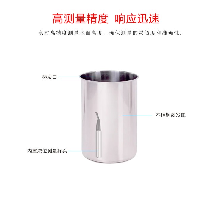 蒸發傳感器由液位傳感器和增發皿構成。通過記錄液位傳感器每日測量液位差值變化,通過軟件處理及時,得到需要的蒸發量信息。