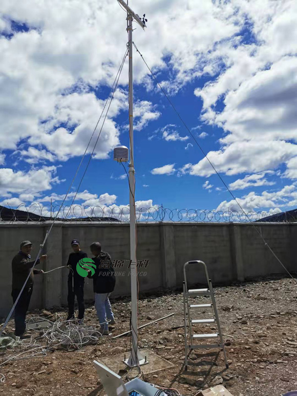 富源飛科物聯網安裝的稻城環境自動氣象站,可對環境Pm2.5、Pm10、風速、風向、溫濕壓、日照、雨量、雪深等要素實時在線監測,數據通過4G無線傳輸至云平臺。