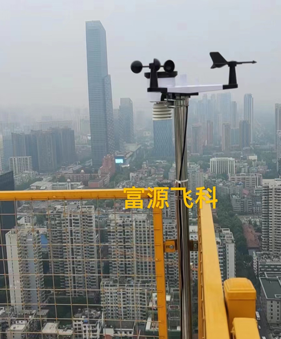 富源飛科聯合漢口地鐵集團安裝在工地項目頂樓的一體式多要素氣象站,是一款采用全戶外一體式設計,低功耗、免維護,可快速布置安裝,便于戶外監測使用的高精度氣象觀測設備。