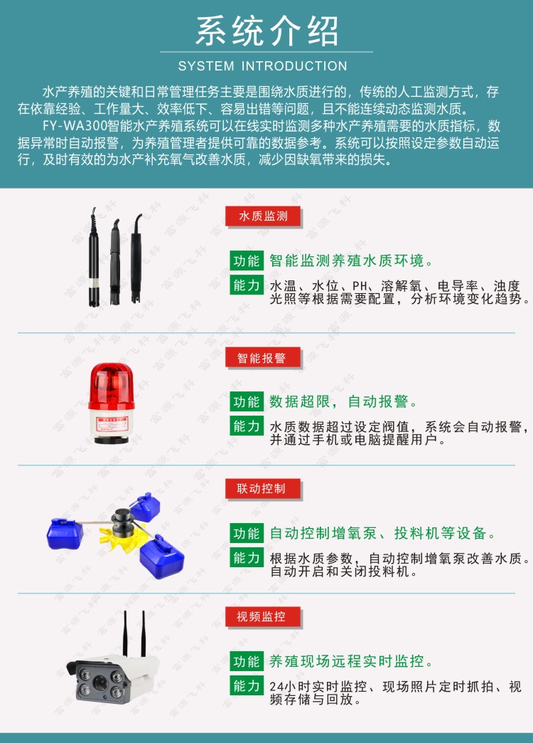 FY-WA300智能水產(chǎn)養(yǎng)殖系統(tǒng)可以在線實(shí)時(shí)監(jiān)測(cè)多種水產(chǎn)養(yǎng)殖需要的水質(zhì)指標(biāo),數(shù)據(jù)異常時(shí)自動(dòng)報(bào)警,為養(yǎng)殖管理者提供可靠的數(shù)據(jù)參考。系統(tǒng)可以按照設(shè)定參數(shù)自動(dòng)運(yùn)行,及時(shí)有效的為水產(chǎn)補(bǔ)充氧氣改善水質(zhì),減少因缺氧帶來(lái)的損失。