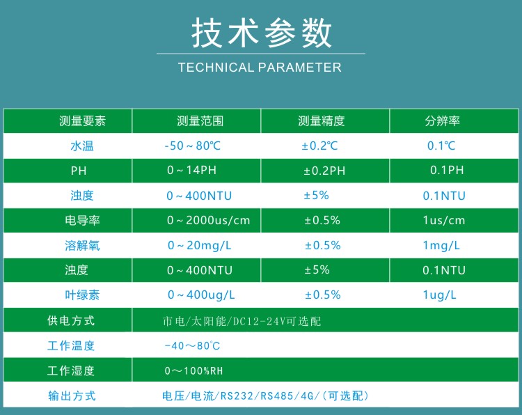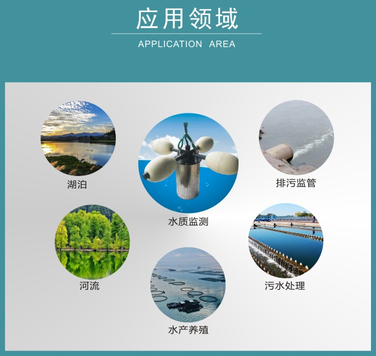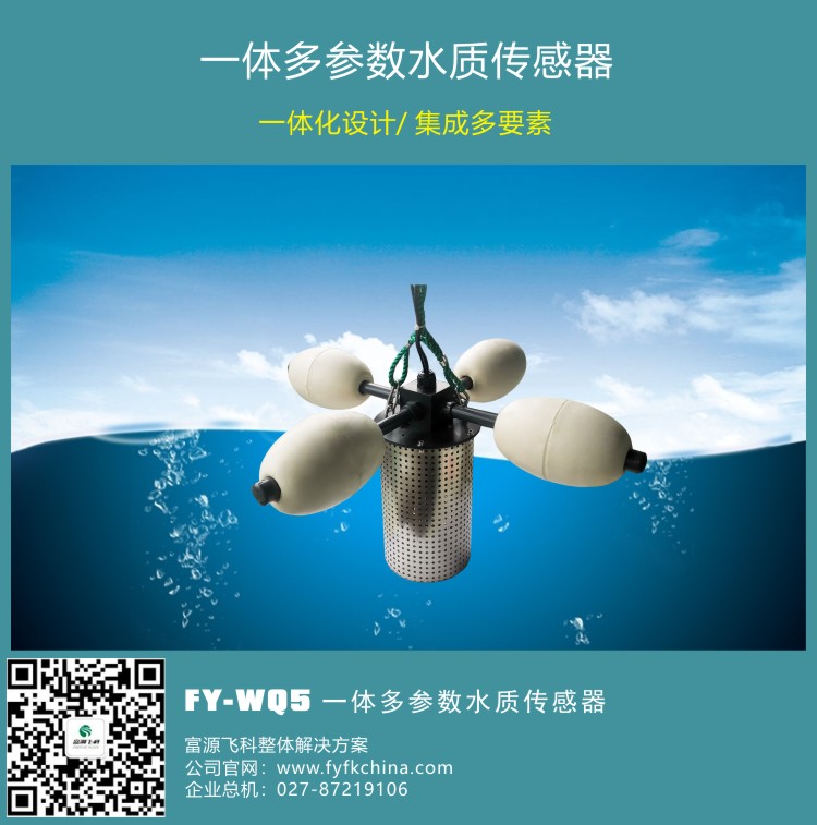 FY-WQ5一體多參數水質傳感器用于各種水域的水質在線監測,可對水溫、PH、濁度、溶解氧、電導率等參數進行實時監測,實現實時無人值守監測。傳感器采用浮標式結構,直接放入待測水域即可,測量電極可根據需要選配??筛鶕脩舻牟煌枨筝敵鯮S232、RS485、4G等通訊方式傳輸。儀器體積小巧,安裝方便,性能可靠;可廣泛應用于河流湖泊水質監測、水產養殖、污水處理、水廠等諸多領域。