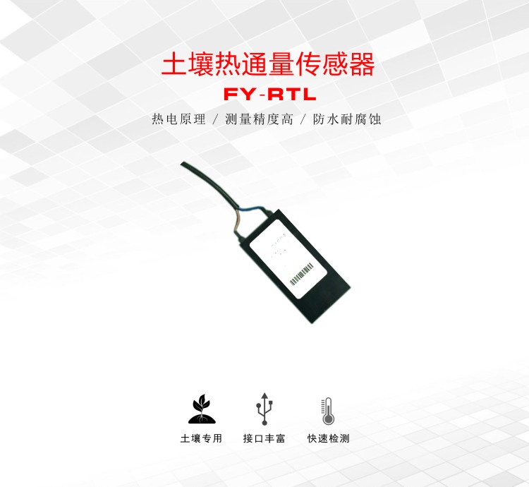 FY-RTL熱通量傳感器(又稱作熱流板、熱通量板、熱流計),是用來測量熱通量的儀器,可以用于土壤內部測量。它通過一個熱電堆,以電壓形式輸出,電壓正比于熱通量,它容易操作,特別適用于測量土壤和建筑墻體、玻璃墻體的熱導率。 利用埋在土中2cm處的熱通量板所測量得到的土壤熱通量值。一年當中,它是隨著季節的變化而變化,夏季土壤熱通量為正值,既有熱量進入土壤層中,而且量值較大;冬季則土壤熱通量為負值,土壤中的熱量向大氣釋放,但量值較小。