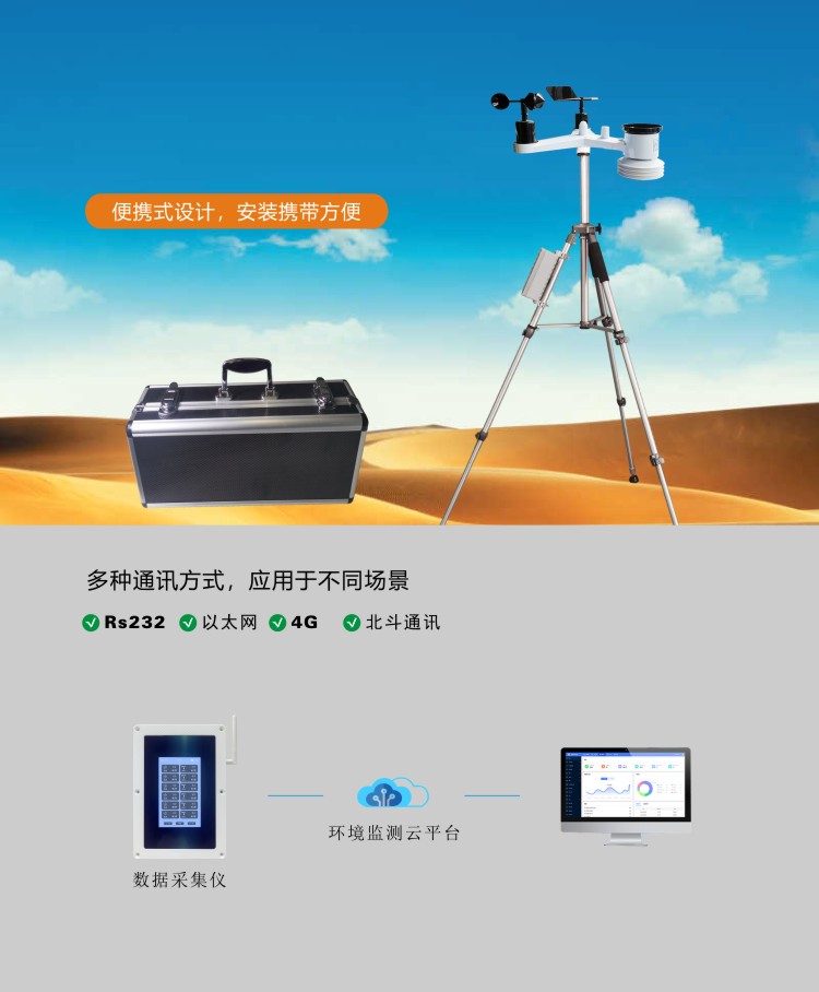 FY-CQ300便攜式氣象儀是一款攜帶方便,操作簡單,集多項氣象要素于一體的可移動式氣象觀測儀器。系統(tǒng)采用精密傳感器及智能芯片,用于測量風速,風向、溫度,濕度,露點,大氣壓力,BF 薄福,風寒指數(shù),海拔高度等數(shù)據(jù),并可擴展GPS定位功能。內(nèi)置大容量FLASH存儲芯片可存儲至少一年的氣象數(shù)據(jù);支持有線和無線通訊方式,將數(shù)據(jù)傳輸至單機軟件或云平臺,方便用戶對氣象數(shù)據(jù)的進一步處理分析。本儀器具有免調試、可折疊伸縮、自帶可充式電源等特點,使其非常適用于各類應急臨時氣象短期觀測、長期連續(xù)的小型氣象監(jiān)測和移動氣象監(jiān)測等各類氣象數(shù)據(jù)的獲取。