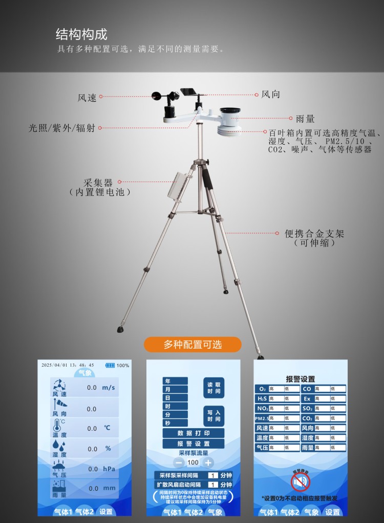?可同時監(jiān)測風速、風向、溫度、濕度、氣壓等氣象參數(shù);