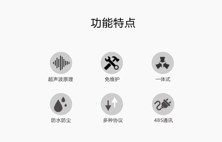 ●頂蓋隱藏式超聲波探頭,避免雨雪堆積的干擾,避免自然風遮擋;
