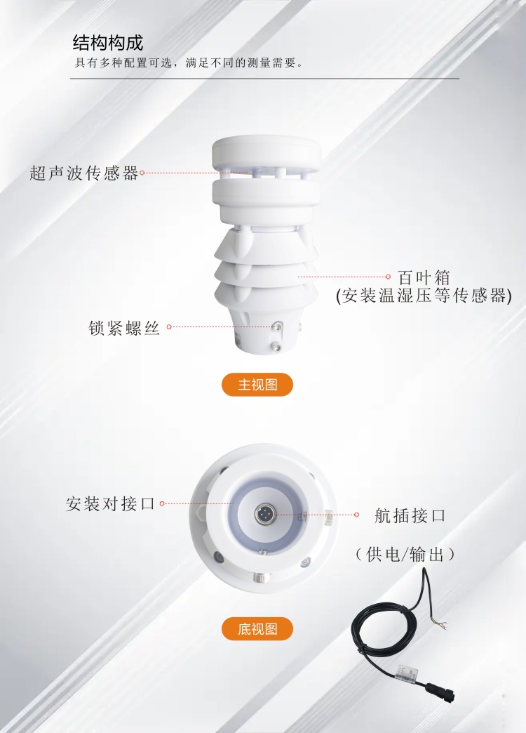 ●原理為發射連續變頻超聲波信號,通過測量相對相位來檢測風速風向;