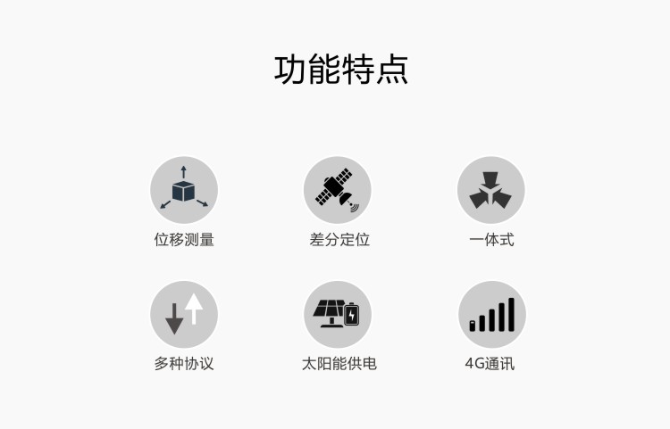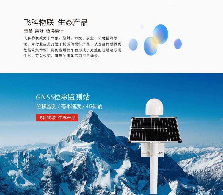 FY-DZ1000型GNSS位移監測站主要由GNSS天線、太陽能電池板、主控制機箱、無線通訊單元和支架等部分組成,分為基準站和測量站。具有高精度、低功耗、高性價比和便攜安裝等特點。通過4G或以太網上傳數據至監控平臺,采用太陽能供電,不受地形限制。