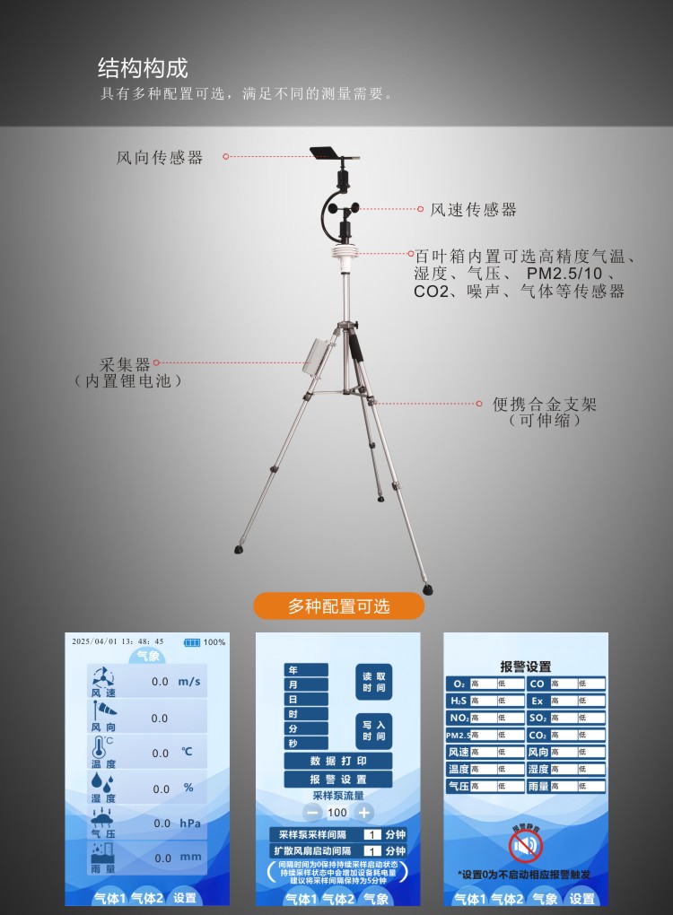 ?可同時監測風速、風向、溫度、濕度、氣壓等氣象參數;
