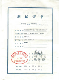 風(fēng)速風(fēng)向檢定證書