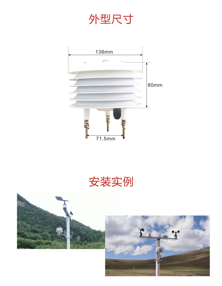 例如:FY-TPRH-12V-W2:多要素氣象百葉箱:12V供電,RS485輸出 |