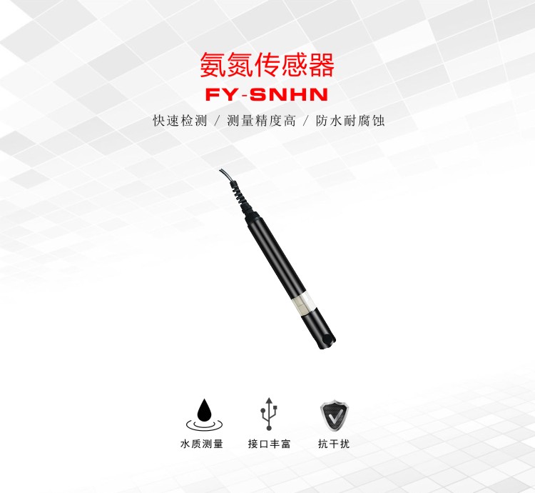 氨氮指水中以游離氨(NH3)和銨離子(NH4+)形式存在的氮。FY-SNHN氨氮傳感器利用固定在敏感膜上的離子識別材料有選擇性地結合被傳感的離子,從而發生膜電位或膜電流的改變。從而將感受的離子量轉換成電信號。