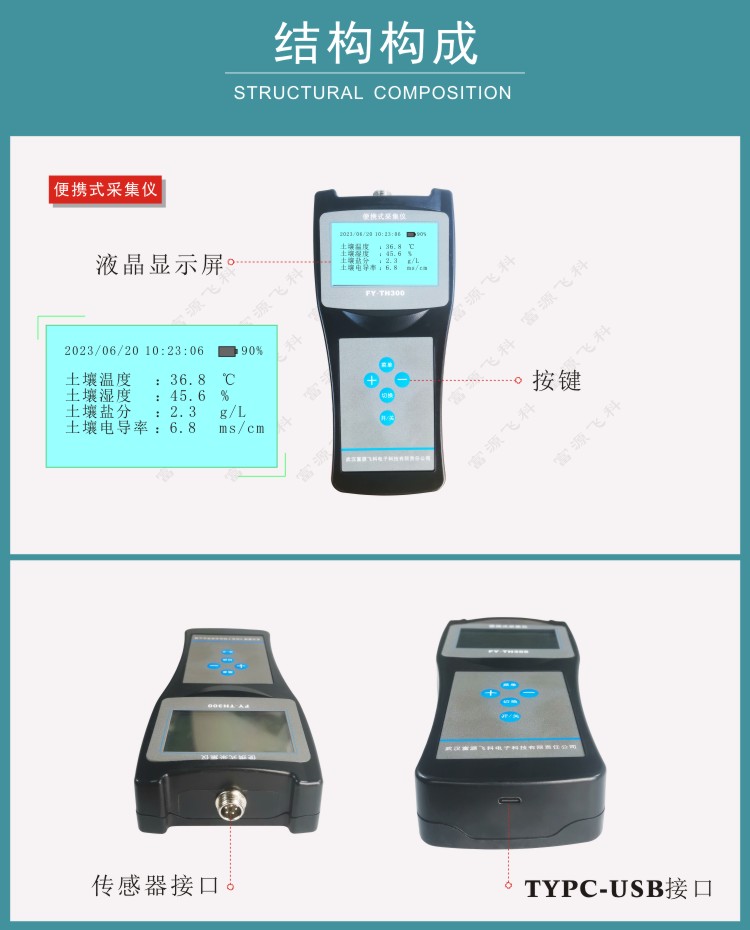 FY-TH300便攜式采集儀是采用國際最新傳感器原理和微控制器技術的新型手持式自動觀測設備,主要用于便攜條件下實施環境檢測。 具有測量精度高、穩定可靠、體積小、重量輕、攜帶方便等突出優點。可選配各種傳感器探頭,用于測量溫度、濕度、氣壓、二氧化碳、土壤溫濕度、電導率、鹽分、PH、太陽輻射、光照度、紫外等。便攜式采集儀可直接讀取實時氣象數據,并自動儲存歷史數據。配備有USB通訊接口可將數據下載到電腦,方便用戶對數據進行處理分析。