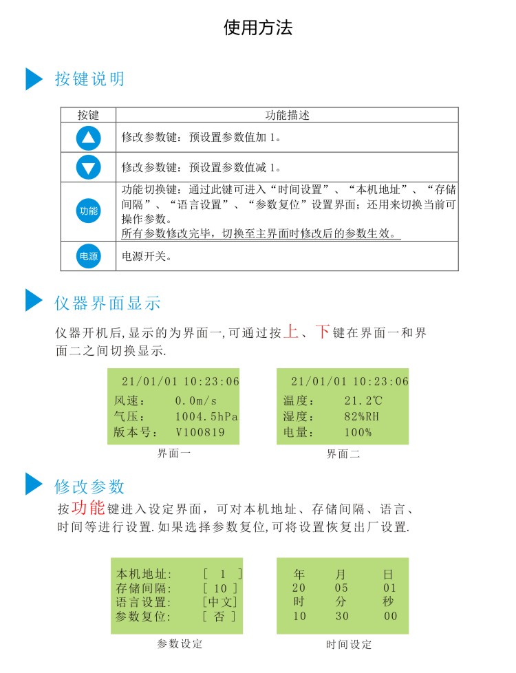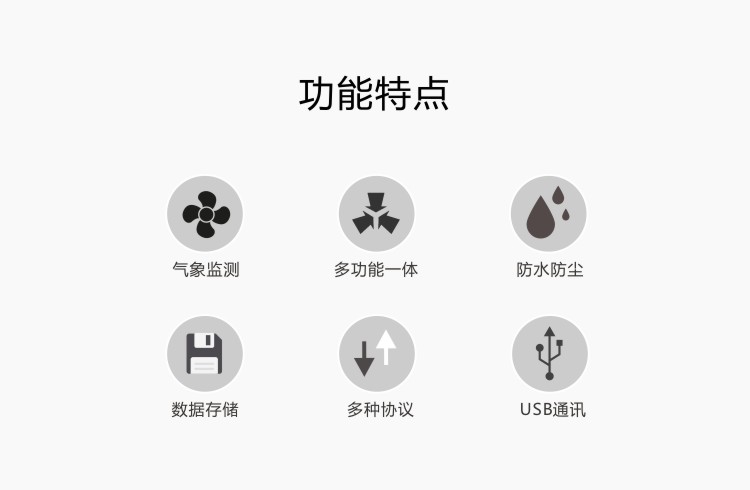 ●大容量數據存儲,最多可存儲90000條氣象數據(數據記錄間隔可在1~240分鐘之間設置);