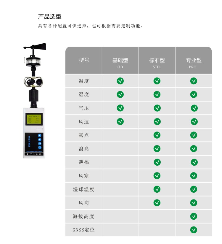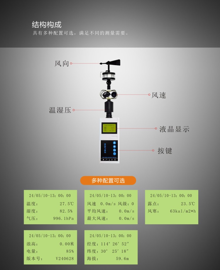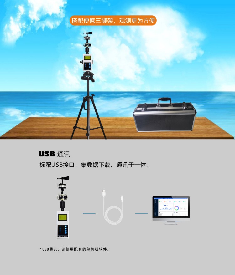 FY-Q4電子氣象儀是一款攜帶方便,操作簡單,集多項氣象要素于一體的可移動式氣象觀測儀器。系統采用精密傳感器及智能芯片,用于測量風速,風向、溫度,濕度,露點,大氣壓力,BF 薄福,風寒指數,海拔高度等數據,并可擴展GPS定位功能。內置大容量FLASH存儲芯片可存儲至少一年的氣象數據;通用USB通訊接口,使用配套的USB線纜即可將數據下載到電腦,方便用戶對氣象數據的進一步處理分析。本儀器可用于農林、環保、海洋、科學考察等領域。