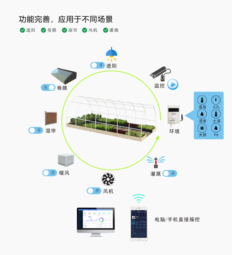 可以通過有線或無線的方式連接計算機,在計算機上安裝溫室環境智能監控系統軟件,實時監測溫室內的環境數據。