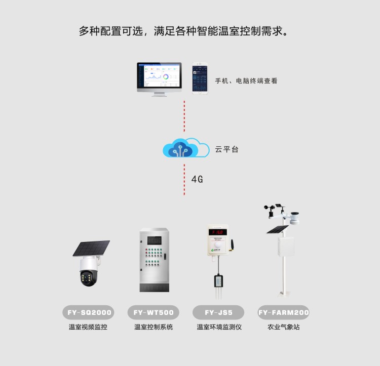 FY-WT500溫室智能控制系統是專為農業物聯網領域研制的多功能智能監控系統。用戶可根據需要配置相應的傳感器,實現對溫室大棚內的溫度、濕度、光照強度、二氧化碳、土壤溫度、土壤濕度等參數的在線監測。系統配備有多路控制繼電器,可根據設定參數控制風機、濕簾水泵、天窗、遮陽網、補光燈、二氧化碳發生器等,為農作物生長創造最佳生長條件。